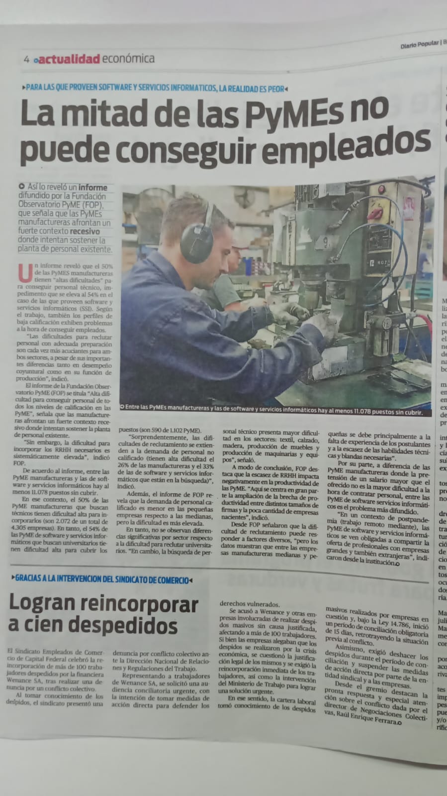 El 50% de las PYMES tiene una "alta dificultad" para incorporar técnicos